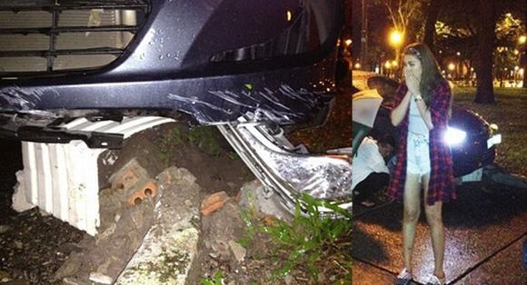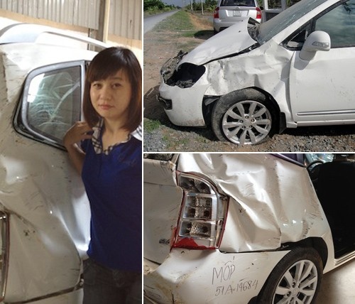 | Gặp rắc rối vì xe đi đường: Đây là sự cố mà người mẫu Kim Dung từng gặp trong vụ tai nạn xảy ra đêm 29/7 vừa rồi. Chân dài chia sẻ: "Khi tôi đang lái xe về nhà, ở phía trước là một chiếc taxi. Qua khúc quẹo, chiếc xe này không mở đèn xi nhan xin đường khiến tôi nhầm tưởng xe vẫn chạy thẳng. Nhưng chiếc xe này bất ngờ rẽ trái, tôi không phản ứng kịp và lạc tay lái, xe lao thẳng lên vỉa hè, đâm vào hàng chậu cảnh, làm hỏng một phần lề đường". Chiếc xe hơi 650 triệu của Kim Dung bị hư hỏng nặng còn bản thân cô cũng bị thương nhẹ. |