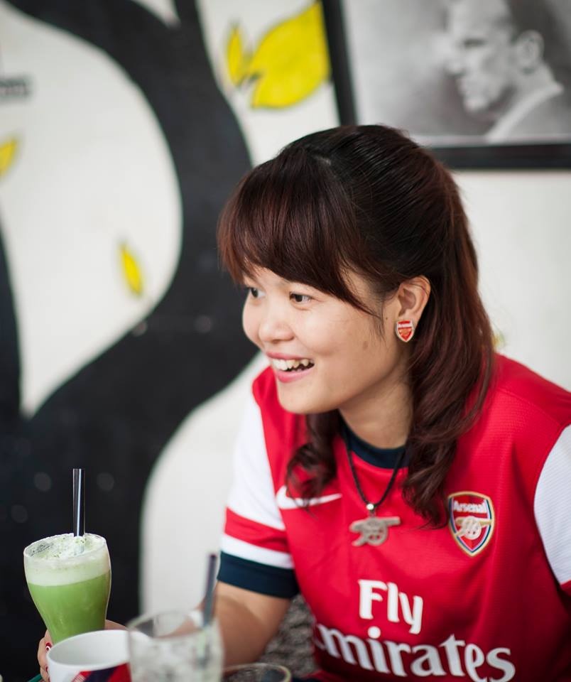 | Phạm Thị Dung là người duy nhất được Arsenal chọn để viết bài về đội bóng tại Việt Nam. Đây là tấm ảnh được đích thân nhiếp ảnh gia do Arsenal cử qua chụp cho cô. |