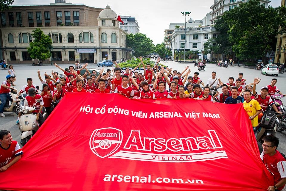| Hội CĐV Arsenal tại Việt Nam được thành lập từ năm 2004 và có nhiều hoạt động ý nghĩa. Bức ảnh này đã được Arsenal trân trọng treo ở hành lang đường ra của sân Emirates. |