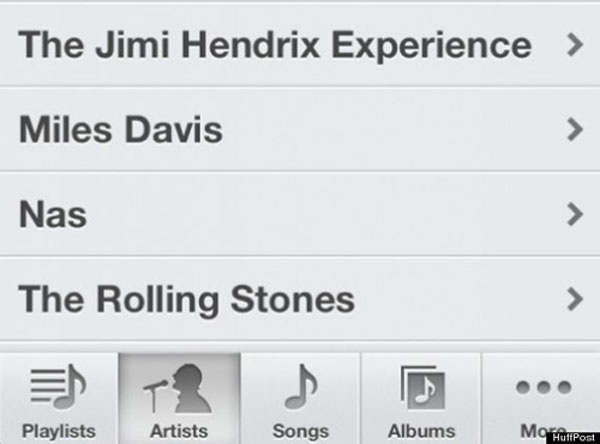 Để xem được hình ảnh này, người dùng hãy mở ứng dụng Music trên iPhone, cuộn tới biểu tượng "Artists" ở dưới cùng màn hình. Biểu tượng "Artists" được Apple thiết kế dựa trên hình ảnh ca sỹ Bono, nhóm trưởng của nhóm nhạc rock U2.