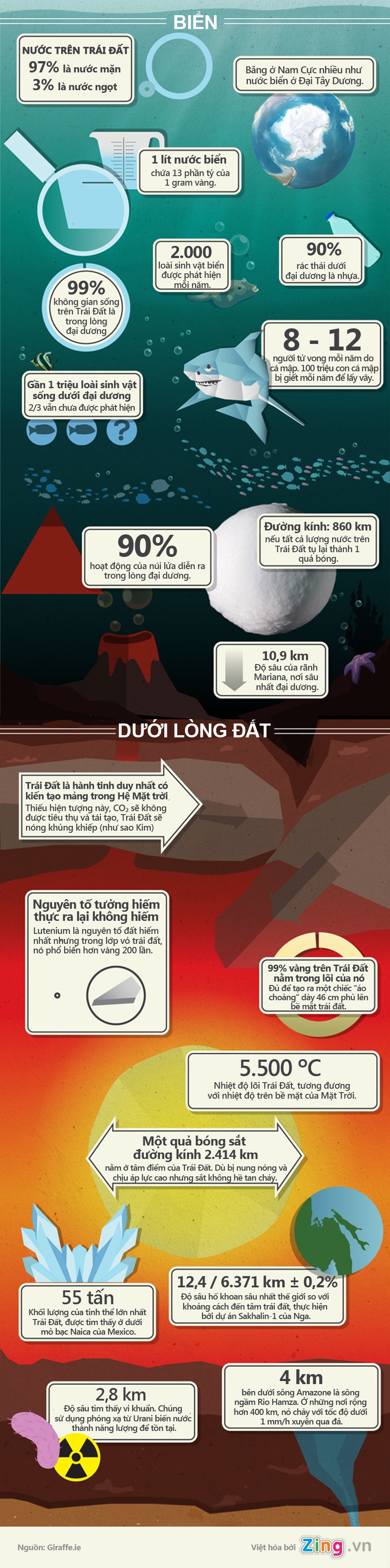100 triệu con cá mập bị giết mỗi năm để lấy vây, 99% vàng trên thế giới nằm trong lõi của trái đất là những điều ít người biết về đại dương và bên trong địa cầu.