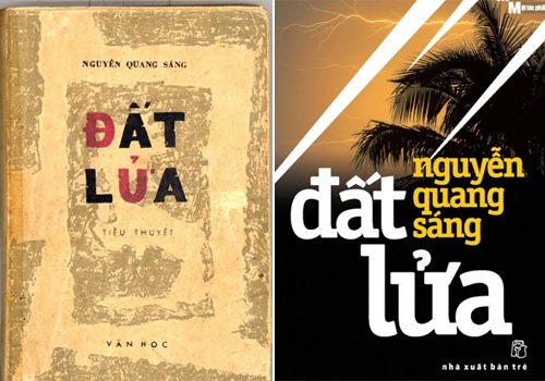 | Bìa tiểu thuyết Đất lửa in lần đầu (1963) do Văn Cao vẽ (ảnh Tuổi trẻ) và cuốn tái bản mới nhất về tác phẩm này. |