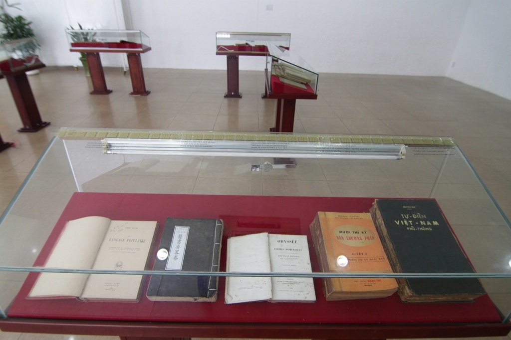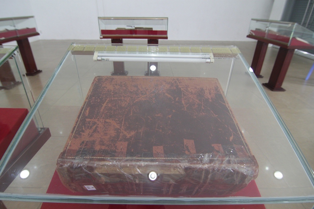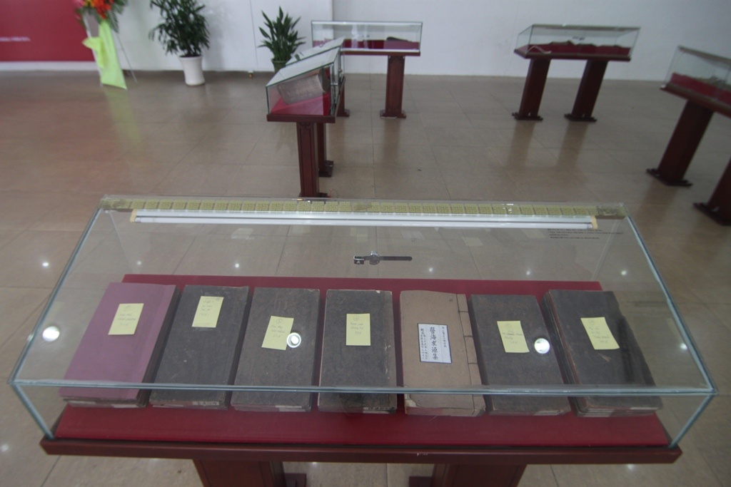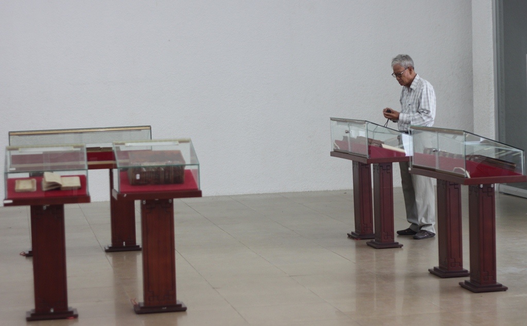 | Các tập sách quý đều được bảo quản kỹ lưỡng trong tủ kính. |