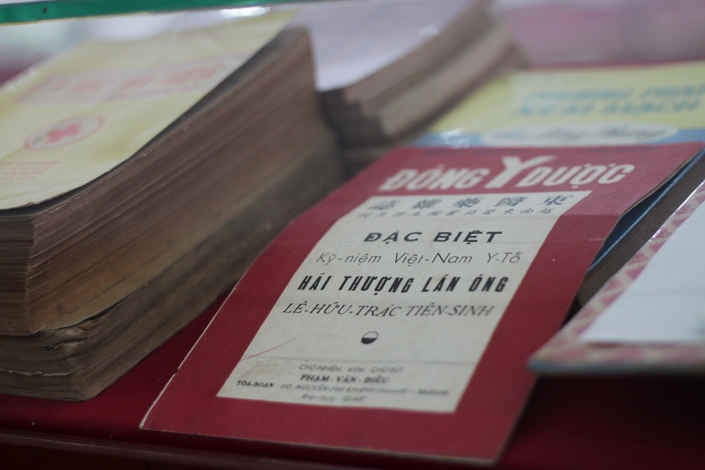 | Những cuốn sách xưa viết về y học được trưng bày. |