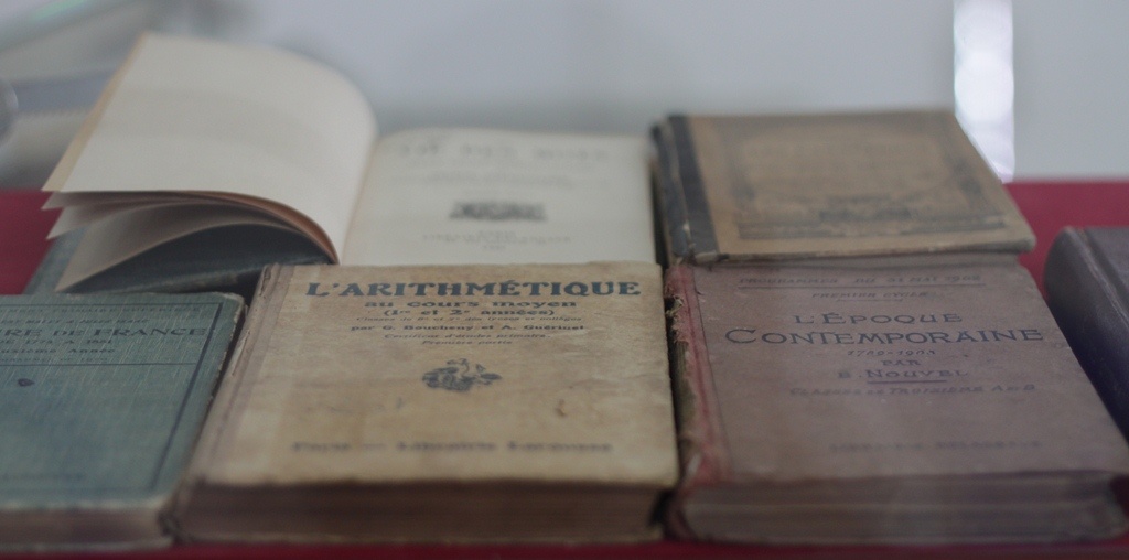 | Nhiều sách quý viết bằng Pháp trưng bày trong buổi triển lãm. Các cuốn sách thuộc về nhà sưu tập Nguyễn Sơn Trà. |