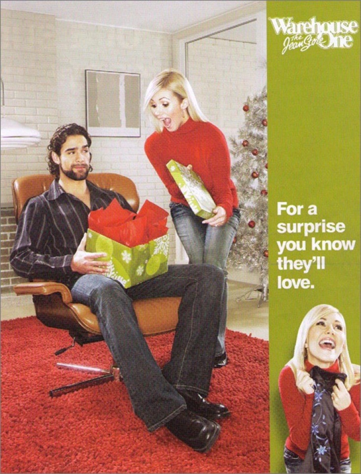 Điều gì khiến cô gái ngạc nhiên và vô cùng thích thú khi quan sát những gì chứa trong chiếc hộp? Chính vị trí của nó và vẻ mặt đầy tính khiêu khích của anh chàng người mẫu đã khiến mọi người suy nghĩ khác hẳn về quảng cáo của Warehouse One Jean Store.