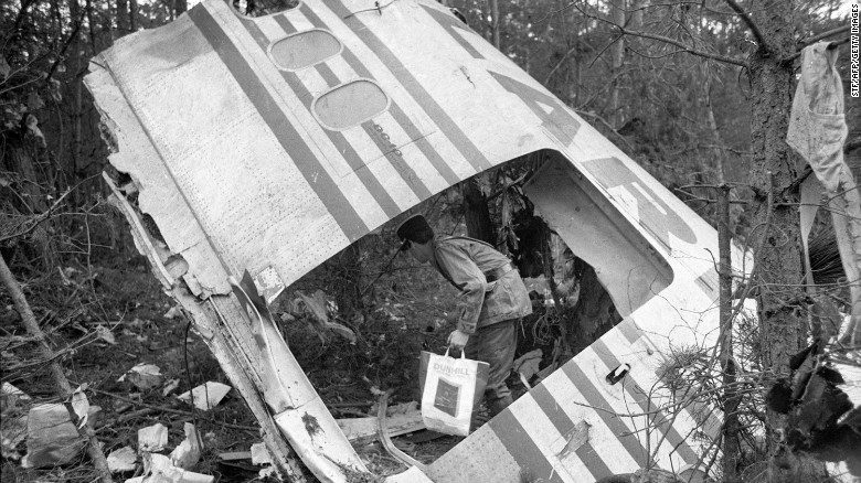 | Tối 21/12/1988, chuyến bay mang số hiệu 103 của hãng hàng không Pan Am nổ tung trên bầu trời khu vực Lockerbie, Scotland, khiến toàn bộ 259 người trên máy bay và 11 người dưới mặt đất thiệt mạng. Cảnh sát cho biết, Abdelbeset Ali Mohmed al Megrahi là thủ phạm của vụ đánh bom và phải nhận án tù chung thân. Ảnh: Getty |