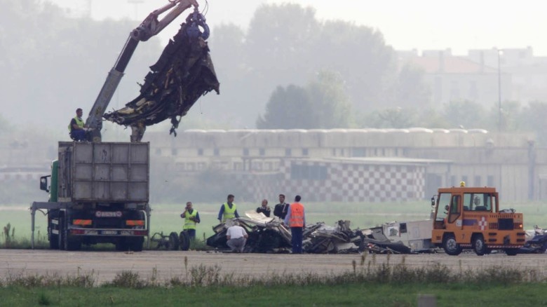 | Ngày 8/10/2001, chiếc máy bay dòng McDonnell Douglas MD-87 của hãng Scandinavian Airlines va chạm với một phi cơ 8 chỗ hiệu Cessna đi lạc trên đường băng tại sân bay Linate ở Milan, Italy. Sương mù dày đặc là nguyên nhân tai nạn. 114 người trên cả hai máy bay và 4 người trên mặt đất thiệt mạng. Ảnh: AP. |