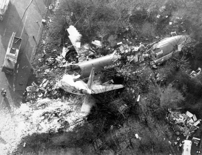 | Ngày 8/1/1989, máy bay mang số hiệu 92 của hãng hàng không British Midland rơi xuống đường cao tốc gần khu vực Leicestershire khi đang chuẩn bị hạ cánh xuống sân bay East Midland, Anh. Trong số 126 hành khách trên chiếc Boeing 737, 47 người thiệt mạng và 74 người bị thương nặng. Ảnh: BBC. |