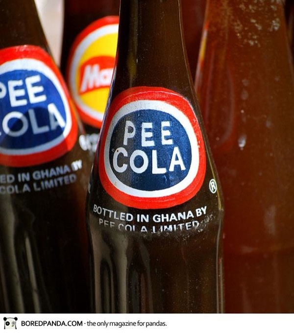 | "Nước tiểu" Cola đóng chai tại Ghana. |