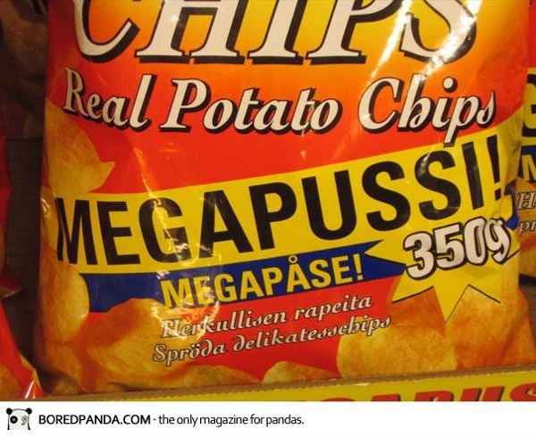 | Tronng tiếng Anh, Pussy vừa có nghĩa là mèo, vừa có nghĩa chỉ bộ phận sinh dục của phụ nữ, vậy nên loại snack Megapussi này quả thực rất nhạy cảm. |