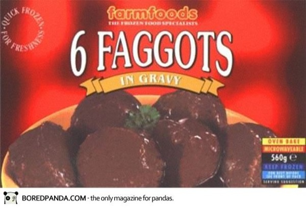 | "Faggots" có cách phát âm rất giống với một từ dùng để chửi thề trong tiếng Anh. |