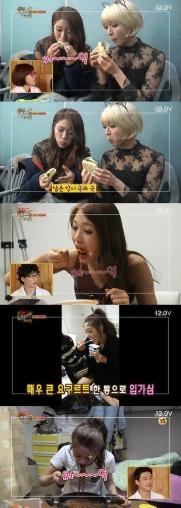 | Trong khi đó, Hyejeong của AOA từng có thói quen hút thuốc trong thời gian dài. Động tác cầm thìa của cô giống như cầm điếu thuốc.. |