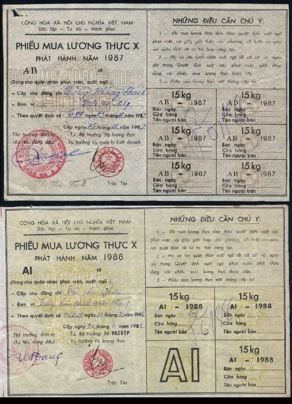 | Thời bao cấp, mỗi người trong từng khu vực nhất định sẽ được cấp phiếu mua lương thực. |