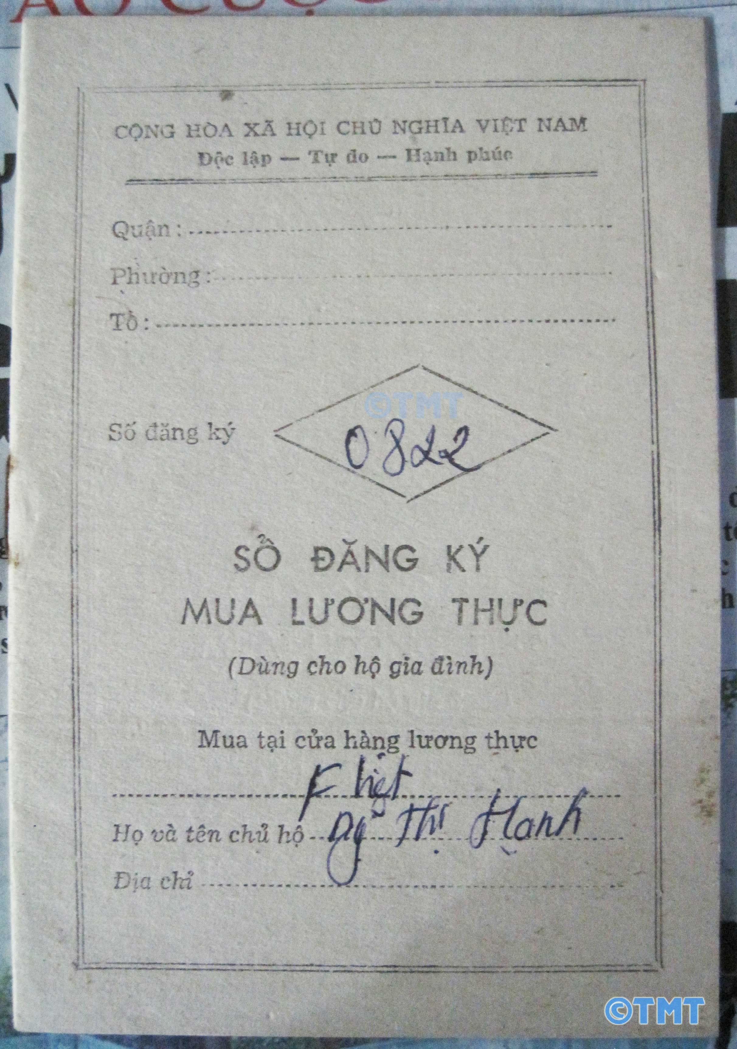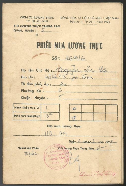 | Sổ gạo tồn tại ở nước ta đến hết năm 1988. Đây là sổ gạo dùng năm 1989 ở Hà Nội. |