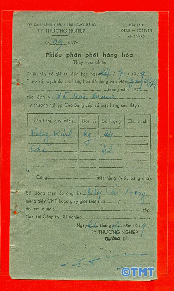 | Phiếu phân phối hàng hóa thay tem phiếu. |