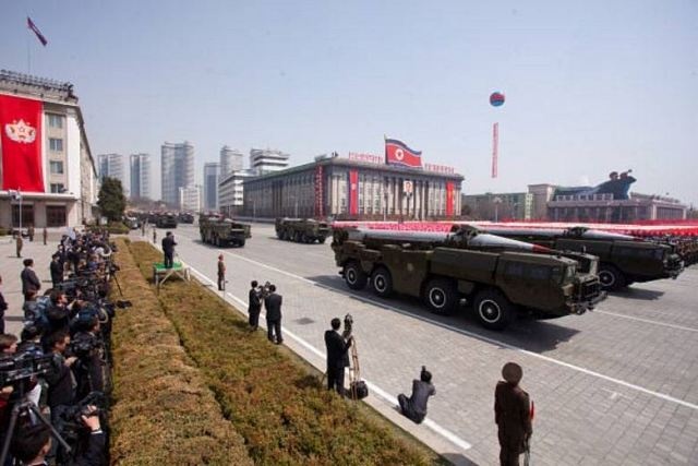 | Tên lửa đạn đạo liên lục địa KN-08 được công khai lần đầu trong một cuộc diễu hành quân sự ngày 15/4/2012. Tên lửa được lắp trên khung gầm chuyên dụng 16x16 bánh. Các chuyên gia quân sự ước tính, KN-08 có tầm bắn từ 5.500-6.000 km và có khả năng mang đầu đạn hạt nhân. Ảnh: Getty Images |