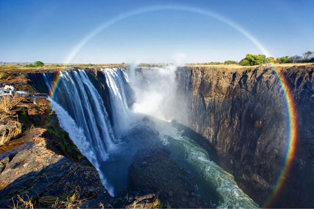 | Thác nước Victoria nằm trên đường biên giới giữa Zambia và Zimbabwe. Tuy chưa từng được công nhận kỷ lục, nhưng nhiều người vẫn cho rằng Victoria là thác nước lớn nhất. Tuyên bố này dựa trên chiều rộng 1.708 m và chiều cao 108 m. Ảnh: Rex |