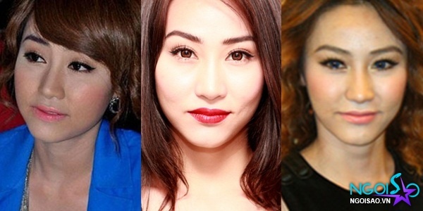 Ngân Khánh mất đi vẻ đẹp tự nhiên, xinh xắn một thời. Thay vào đó là gương mặt méo mó và xấu xí.