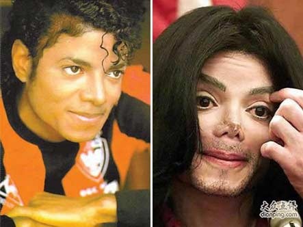 Cố ca sĩ Michael Jackson từng là nạn nhân của việc nghiện thẩm mỹ. Anh từng sở hữu gương mặt điển trai, nhưng cuối đời, gương mặt ấy hoàn toàn biến dạng.