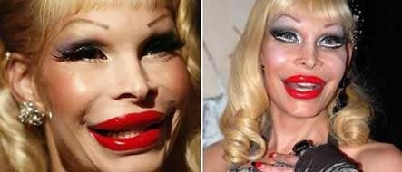 Amanda Lepore là một người đẹp chuyển giới nổi tiếng, tuy nhiên, do nghiện thẩm mỹ nên gương mặt cô đã biến dạng khiếp sợ như thế này.