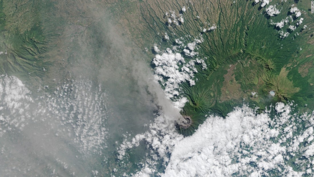 | Tro bụi từ miệng núi lửa Raung bay về phía tây bắc đảo Java, Indonesia trong bức ảnh do vệ tinh Landsat 8 chụp hôm 27/7. Theo Chương trình Núi lửa Toàn cầu của viện Smithsonian, núi lửa Raung phun trào ít nhất 13 lần trong 25 năm qua. Lần phun trào gần nhất xảy ra cách đây một tháng. Tro bụi khiến giới chức Indonesia phải hoãn bay và đóng cửa các sân bay. |
