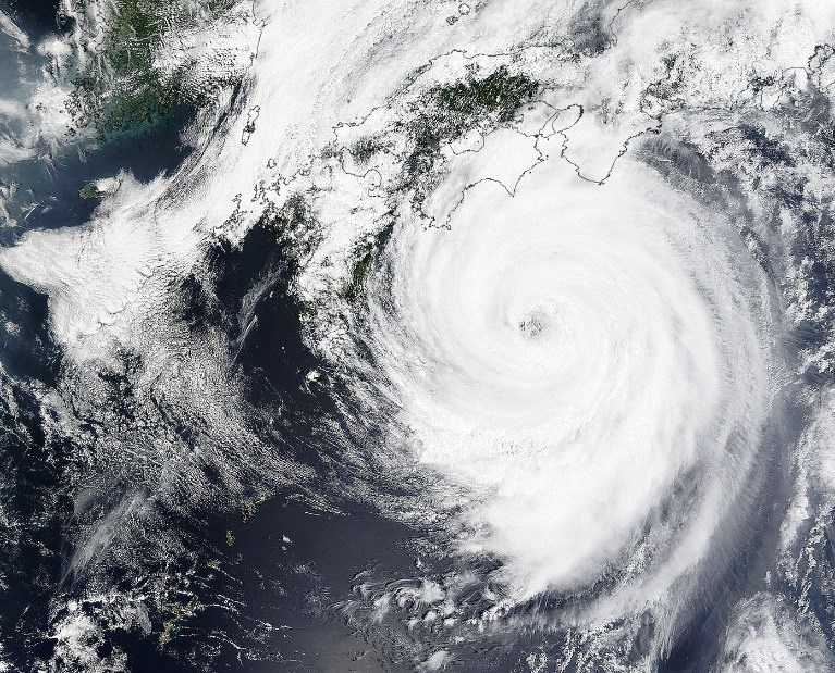 | Hình ảnh bão Nangka đổ bộ gần thành phố Muroto thuộc đảo Shikoku, Nhật Bản nhìn từ vũ trụ hôm 16/7 sau khi vượt 4.000 km từ Thái Bình Dương. Khoảng 4.000 người dân ở tỉnh Kochi phải sơ tán để tránh bão. |