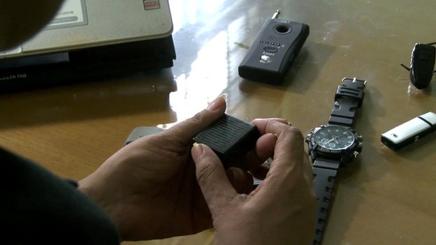 | Các thiết bị hiện đại như máy ghi âm, máy ảnh, máy quay siêu nhỏ phục vụ cho công việc của các thám tử. Ảnh: BBC |