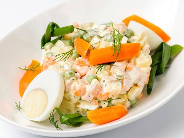 | Thịt gà, tôm, hải sản... bổ sung thêm protein và nhiều thành phần dinh dưỡng cho món salad. Tuy nhiên, bạn không nên sử dụng các loại nguyên liệu chiên rán trong món trộn. Gà chiên, tôm chiên chứa nhiều dầu mỡ, chất béo và natri ... không có lợi cho người muốn giảm cân. |