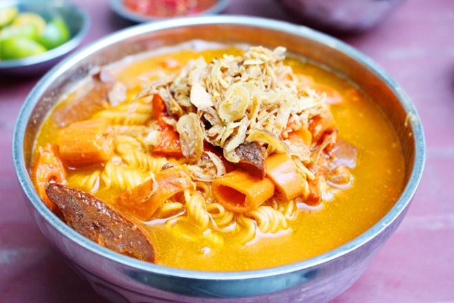 | Điều thú vị là gần như hội tụ các nền ẩm thực thế giới hay trong nước, nơi này vẫn có những món ăn nếu không ăn coi như chưa từng đến Sài Gòn như cơm tấm, bột chiên, bò bía, phá lấu... Ảnh: Hoàng Nhi. |