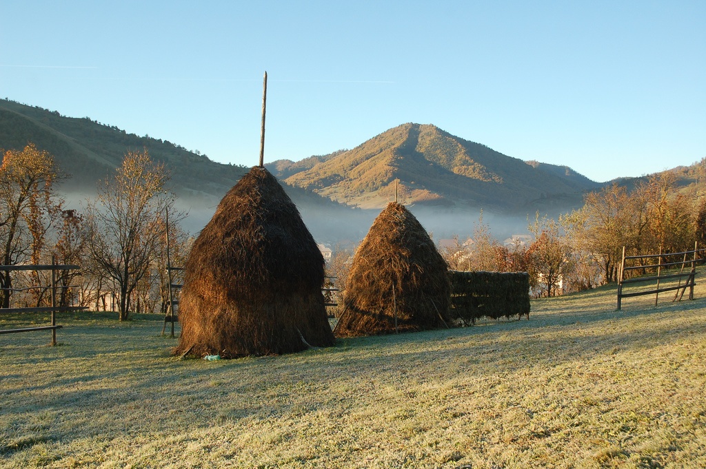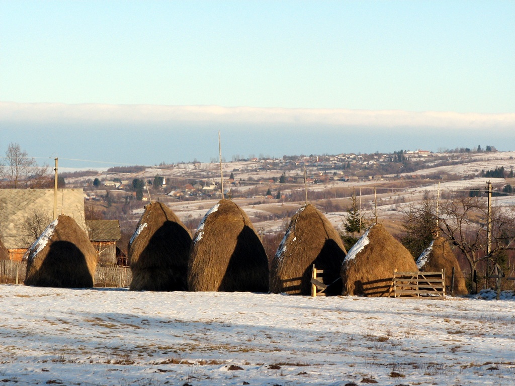 Trước kia, khi không có những đống cỏ khô như thế này để cung cấp thực phẩm bổ sung cho vật nuôi, vào những mùa đông giá lạnh ở Rumani, đa số những loài vật nuôi quan trọng của trang trại đều chết.