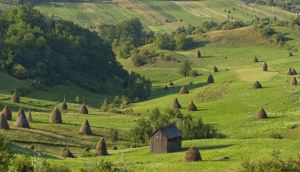 Vào đúng thời điểm thu hoạch của năm thì những cánh đồng cỏ ở vùng nông thôn Rumani được phủ đầy những tháp cỏ khô trông như những tổ mối xinh đẹp.