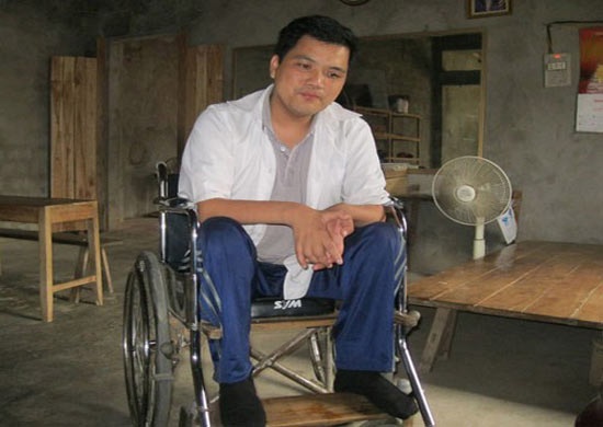 Mắc chứng teo cơ, với đôi chân bị khoèo, không di chuyển được bình thường, đôi tay cũng bị ảnh hưởng đã khiến thầy Phùng Văn Trường (Chương Mỹ, Hà Nội) phải dang dở việc học khi mới chỉ học hết lớp 8.