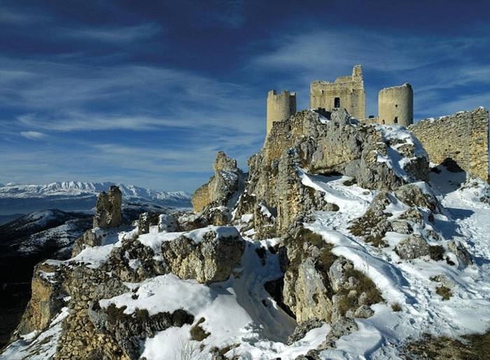 | Thị trấn Rocca Calascio từng thuộc về một gia đình và cũng là pháo đài quân sự nay cũng vắng bóng người. |