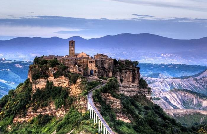 | Civita di Bagnoregio bỏ hoang nhưng ẩn chứa vẻ đẹp thơ mộng. Nơi đây đựoc xây dựng cách đây 2.000 năm và đang đứng trước nguy cơ sụp đổ do nắng mưa, thời gian. |