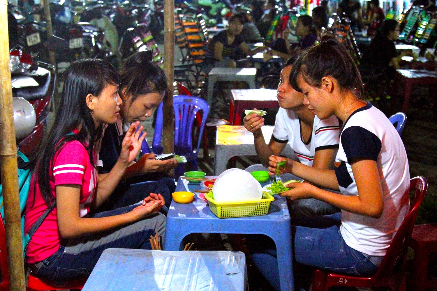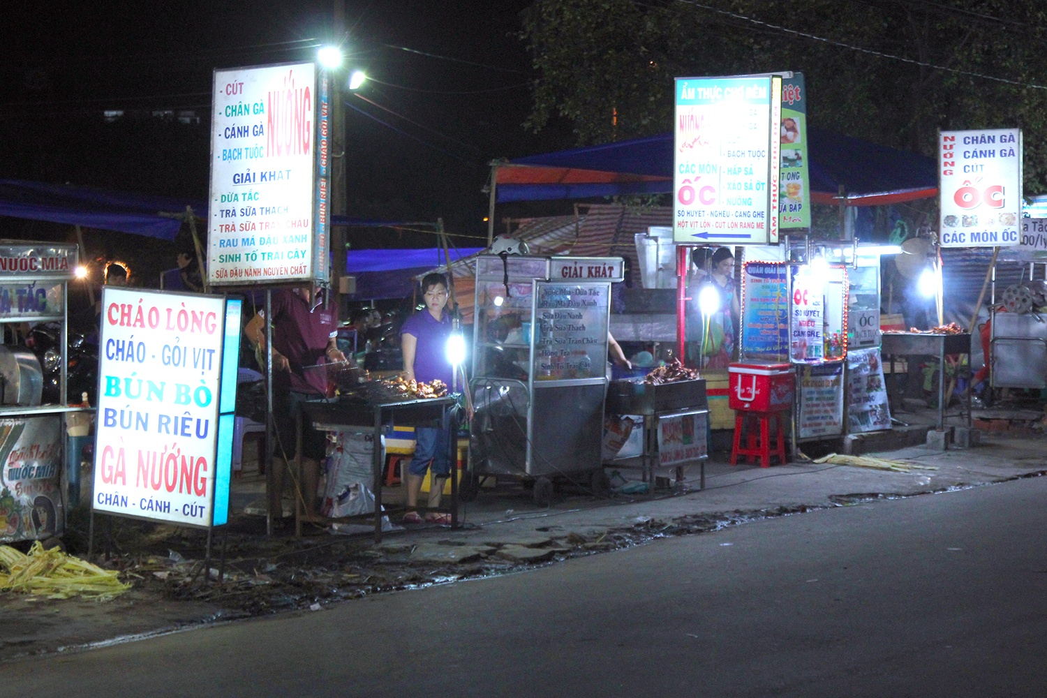 | Bắt đầu phục vụ từ 3 giờ chiều đến tận khuya, các gian hàng ở đây luôn kín khách từ khi mở hàng đến đóng cửa. |