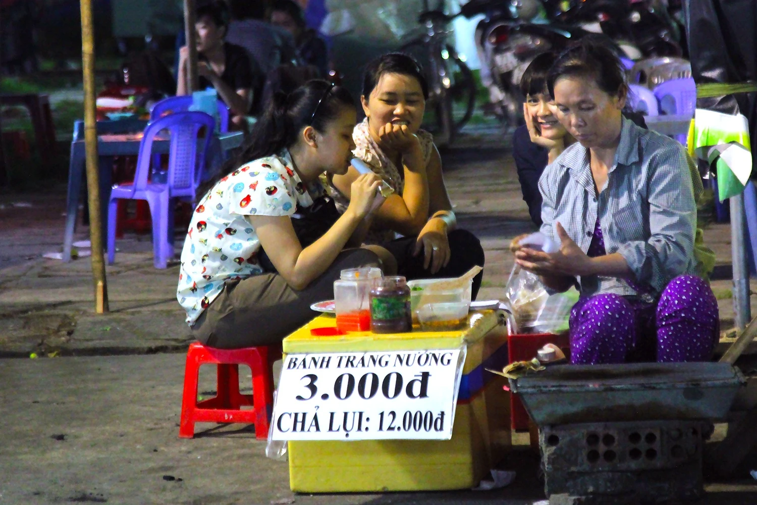 Một quầy bán bánh tráng nướng giá 3.000 đồng nằm một góc nhỏ của khu ẩm thực nhưng luôn có khách hàng đợi.