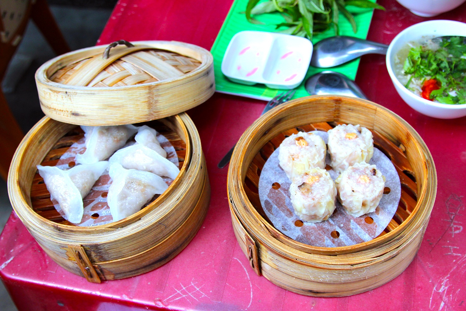 | Khách hàng vô cùng thích thú khi thưởng thức những món điểm tâm như xíu mại, bánh xếp nóng hổi đựng trong những chiếc xửng tre. |