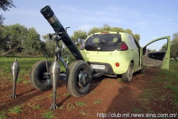 Xe Matiz kéo theo một khẩu pháo cối, để biến vũ khí này trở thành một khẩu đội pháo cối tự hành hết sức độc đáo. |
