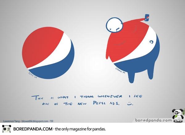 Một khách hàng đã phát biểu rằng khi nhìn vào logo của Pepsi (được cho là tốn rất nhiều công sức thiết kế), anh ta chỉ thấy nó trông như một gã béo ú ục ịch.