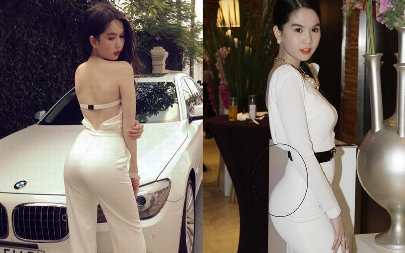 | Có thể xem Ngọc Trinh là một trong những người đẹp khởi đầu xu hướng tạo dáng khoe vòng ba, lưng trần trắng nuột của showbiz Việt. Tuy nhiên, cái gì quá cũng không tốt. Trong một sự kiện mới đây, Ngọc Trinh hớ hênh để lộ miếng độn vòng ba khiến không ít fan của cô thất vọng. |