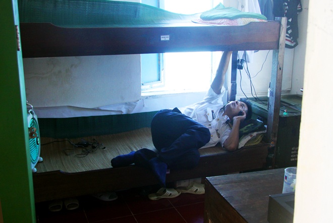 | Mọi góc giường của các chiến sĩ đều có sự hiện diện của chiếc điện thoại. Gần đây, thẻ điện thoại Viettel trở thành món quà ý nghĩa thường thấy mà các đoàn ra đảo mang theo để trao tặng cho những người lính trẻ. |