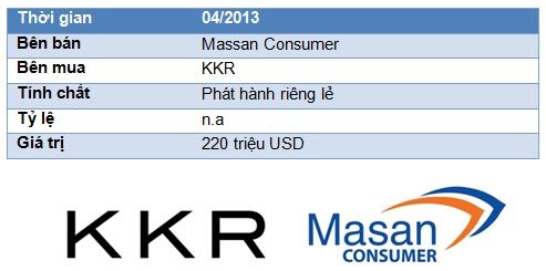 Tháng 4/2011, Tập đoàn đầu tư Kohlberg Kravis Roberts (KKR) đã ký kết với Tập đoàn Masan về việc sẽ mua số cổ phần trên với giá 159 triệu USD. Đây là khoản đầu tư đầu tiên của KKR tại Việt Nam và là khoản đầu tư thứ 4 tại Đông Nam Á. Theo đó, Masan Consumer sẽ chào bán riêng lẻ 14.444.444 cổ phần cho nhà đầu tư chiến lược; lượng cổ phiếu này tương đương 10% vốn điều lệ sau khi phát hành.