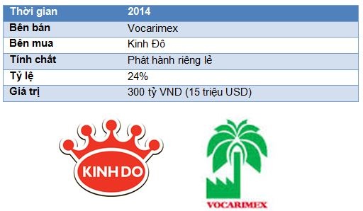 Năm 2014, thực hiện chiến lược tăng trưởng, Kinh Đô tập trung một số thương vụ đầu tư lớn có thể kể đế như mua cổ phần tại Vocarimex, đầu tư vào Phin Deli và hợp tác toàn diện với Sài Gòn Vewong.