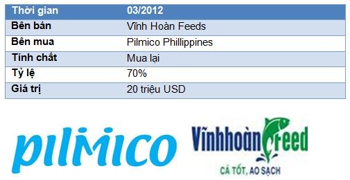 Công ty Cổ phần Vĩnh Hoàn (“VHC”) và Pilmico International Pte. Ltd. (“Pilmico International”), một công ty con 100% vốn sở hữu của Aboitiz Equity Ventures, Inc. (“AEV”) đã ký kết Hợp đồng mua bán cổ phần. Theo đó, Pilmico International mua bảy mươi phần trăm (70%) cổ phần tại công ty Cổ phần Thức ăn thủy sản Vĩnh Hoàn 1 (“VHF”) từ VHC.