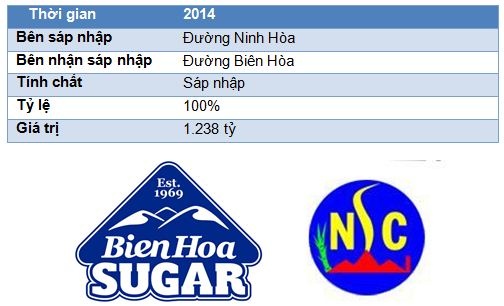 Tại ĐHĐCĐ thường niên 2014, CTCP Đường Biên Hòa (HOSE: BHS) đã thông qua phương án nhận sáp nhập CTCP Đường Ninh Hòa (HOSE: NHS) với tỷ lệ hoán đổi cổ phiếu 1:1.