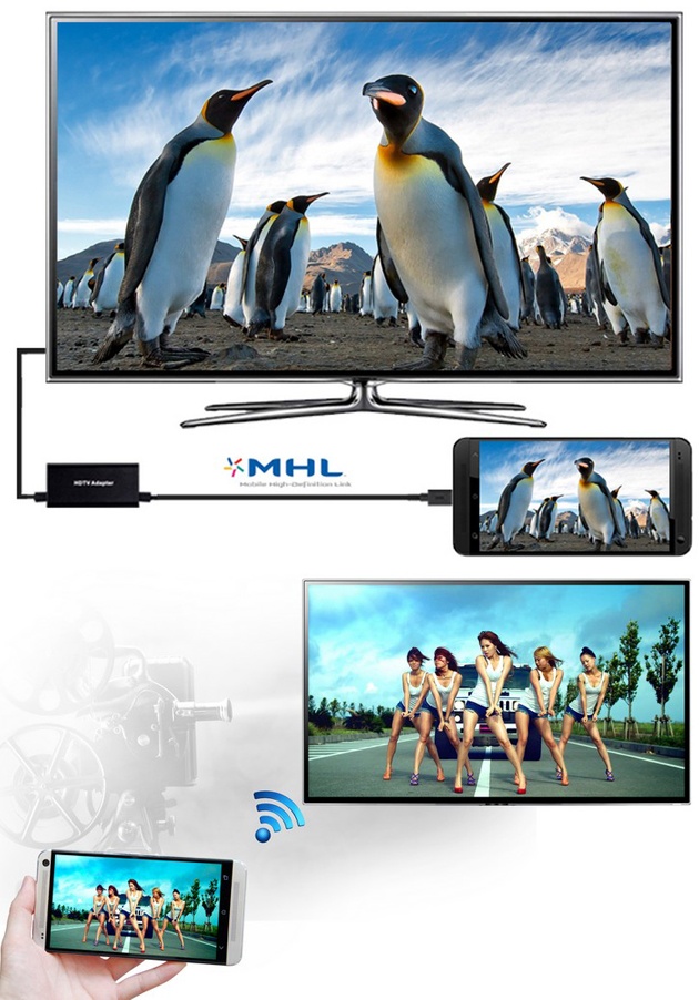 Wireless Display: Chia sẻ không dây, cũng giống như MHL, tính năng chia sẻ không dây sẽ đóng vai trò tương tự, giúp chia sẻ 100% hiển thị từ màn hình điện thoại lên tivi có thêm ưu điểm là không phải dùng đến cáp nối, khoảng cách xa hơn đến 20m và nhược điểm là phải đầu tư thiết bị kết nối giá cao khoảng 1 triệu đồng, không hỗ trợ âm thanh vòm, tốc độ truyển tải sẽ bị trễ hay còn gọi là không đáp ứng kịp ở các tựa game nặng như đua xe Asphalt8, Modern Combat 4…