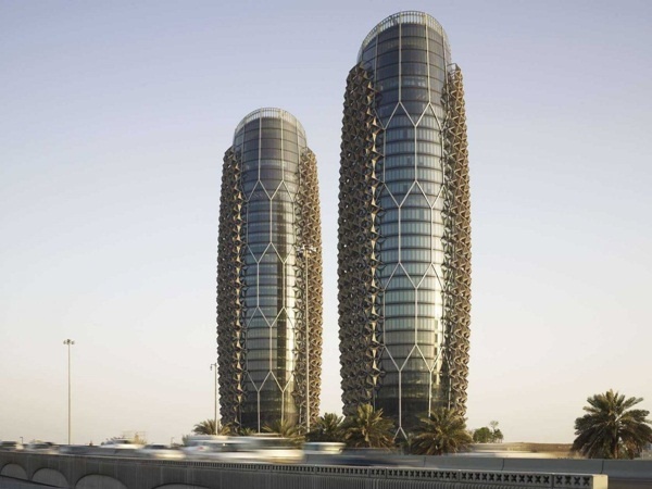 Hai tòa tháp Al Bahr tại Abu Dhabi, UAE, có 25 tầng. Với thiết kế độc đáo, tòa nhà đem lại sự riêng tư và bóng mát với những hình zích zắc hai bên.