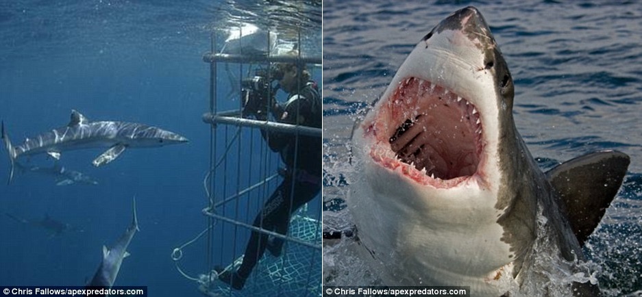 Du khách sẽ được nhìn tận mắt hàm răng sắc nhọn của những con cá mập trắng, ám ảnh kinh hoàng dưới lòng biển.
