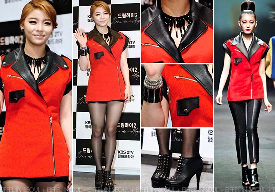 Tham dự buổi họp báo ra mắt phim Dream High 2, Ailee hút mắt với sắc đỏ nhưng cũng tự làm mình xấu với chiếc áo có phần nam tính, đơn giản, che đi mọi đường cong. Bên cạnh đó, việc kết hợp áo với quần short ngắn khiến cô ca sĩ để lộ đôi chân không mấy thon gọn. |